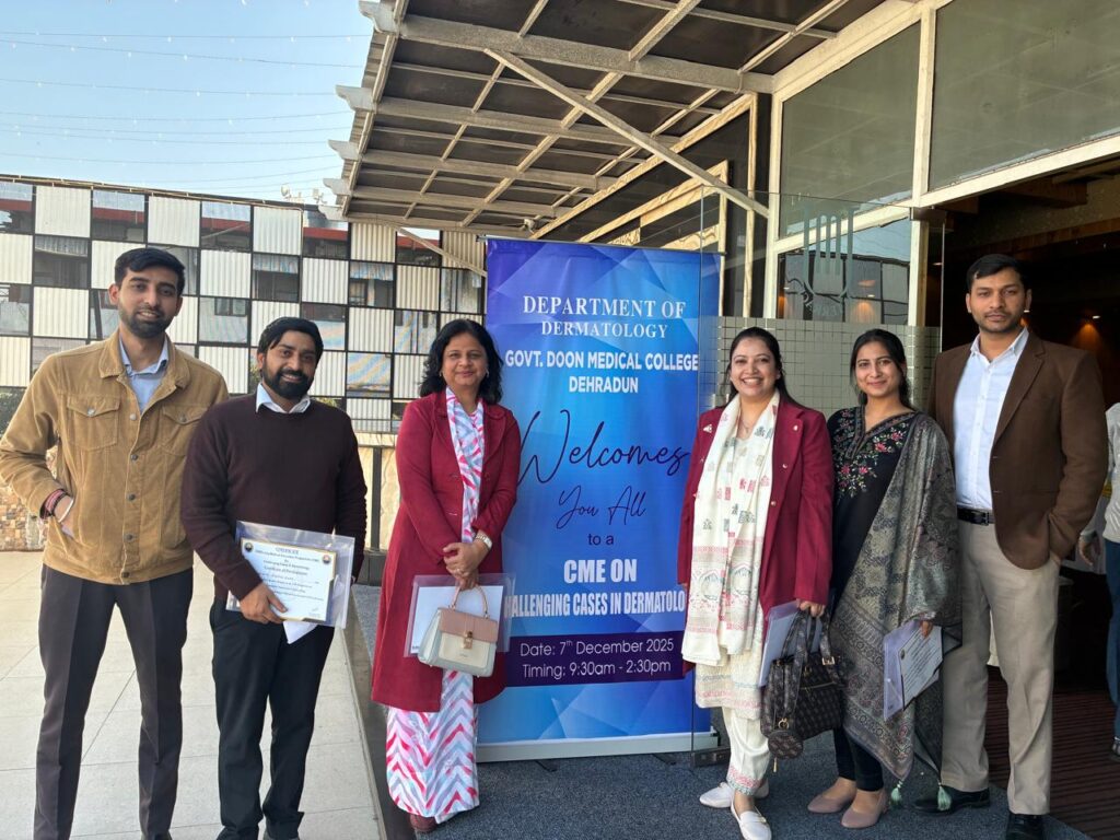 देहरादून 7 दिसंबर । रविवार को दून अस्पताल के त्वचा रोग विभाग की अध्यक्ष डॉ. श्रुति बर्नवाल द्वारा सुबह 9:30 से दोपहर 2:30 बजे तक सीएमई का आयोजन किया गया कार्यक्रम में डॉ. नवीन कंसल (एआईआईएमएस ऋषिकेश), डॉ. वाई.एस. बिष्ट (जॉली ग्रांट अस्पताल), डॉ. नीति कुमारी (श्री महंत इंद्रेश अस्पताल) और डॉ. आर्टेरियो (हरिद्वार मेडिकल कॉलेज) ने अपने-अपने पीजी रेज़िडेंट्स के साथ भाग लिया।