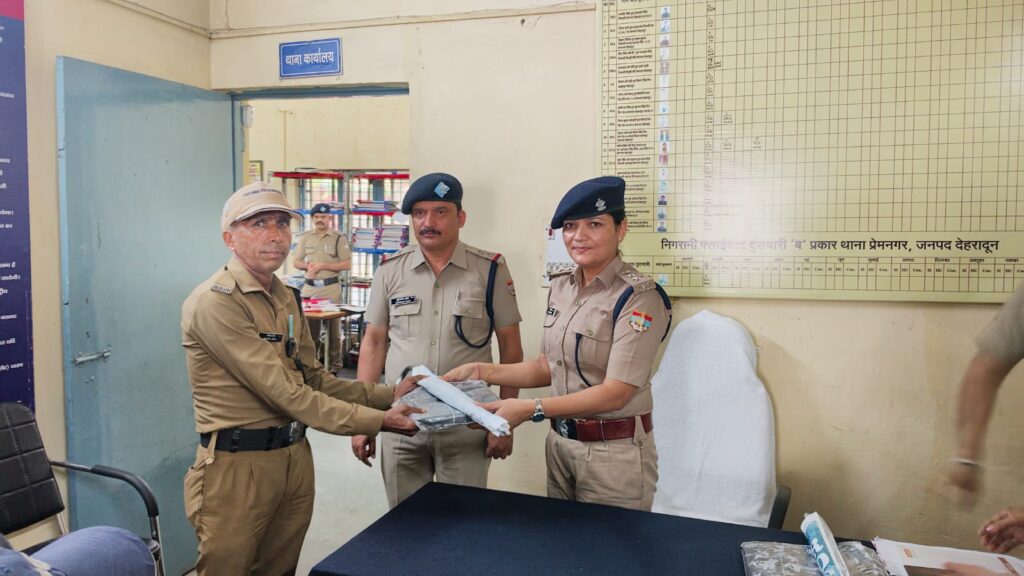देहरादून। एसएसपी देहरादून द्वारा दिए गए निर्देशों के क्रम में क्षेत्राधिकरी प्रेेमनगर रीना राठौर ने थाना प्रेमनगर मे नियुक्त कर्मचारियो का सम्मलेन लिया और इस सम्मेलन में सी ओ ने अच्छे कार्य करने वाले पुलिस कर्मियों का उत्साहवर्धन किया और ट्रैफिक व फिल्ड मेे नियुक्त पुलिस व होमगार्ड के जवानो को बरसात का मौसम देखते बरसाती व छातें वितरित किए।