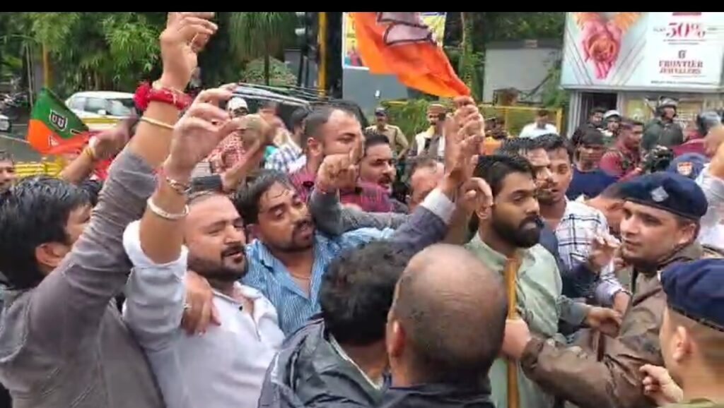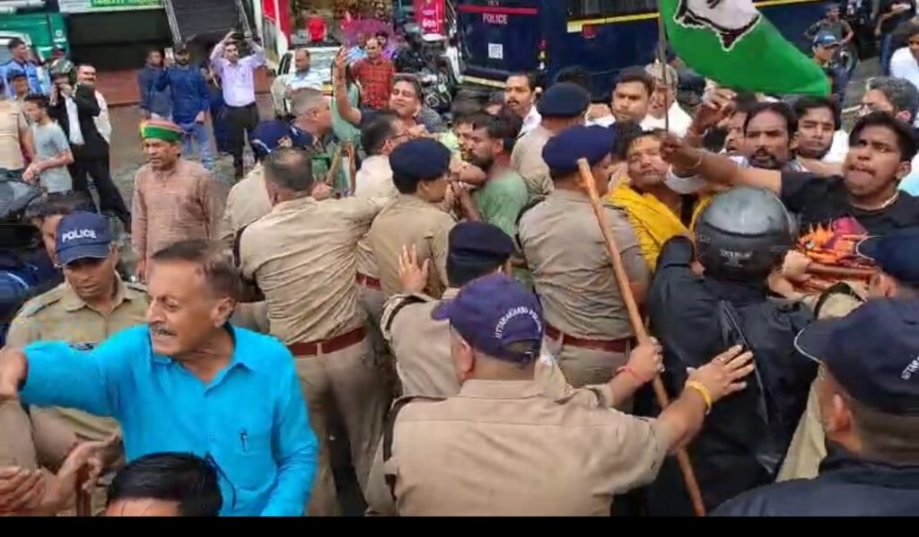 देहरादून । बिहार के दरभंगा जिले में प्रधानमंत्री मोदी की माँ पर अभद्र टिप्पणी करने पर पुरी भाजपा आक्रोश में है और इसी आक्रोश के चलते आज देहरादून में भाजपा महानगर द्वारा आक्रोश प्रदर्शन किया गया इस प्रदर्शन में भाजपा और कांग्रेस दोनो आमने सामने आ गये जिससे गर्मागरमी का माहौल भी देखने को मिला।