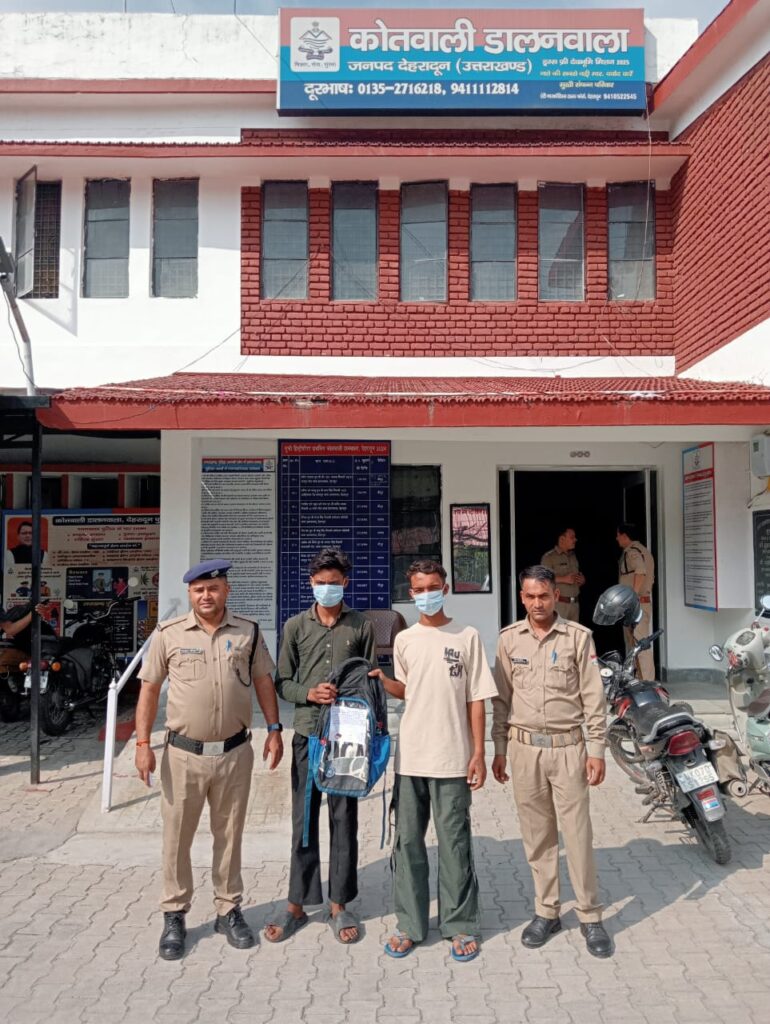 देहरादून। राजधानी देहरादून में होटल से चोरी करने वाले दो अभियुक्तों को दून पुलिस ने गिरफ्तार कर लिया है आपको बता दे कोतवाली डालनवाला पर दिनांक 19-09-25 को वादी रवि चड्डा पुत्र बी0आर0 चड्डा निवासी- सी-21 देवभूमि अपार्टमेंट, देयोंघाट, सोलन, हिमाचल प्रदेश द्वारा लिखित प्रार्थना पत्र दिया कि वे किसी काम के सिलसिले में देहरादून आये थे तथा होटल स्टेटस इन ओल्ड सर्वे रोड देहरादून में ठहरे हुए थे, इस दौरान रात्रि में किसी अज्ञात व्यक्ति द्वारा उनके होटल के कमरे से उनका एक लैपटॉप, लैपटॉप चार्जर, लैपटॉप बैग, मोबाइल फोन, वाहन की चाबी, आधार कार्ड व पैनकार्ड चोरी कर लिये। तहरीर के आधार पर तत्काल थाना डालनवाला पर मु०अ०सं०- 134/2025 धारा 305 BNS बनाम अज्ञात पंजीकृत किया गया।