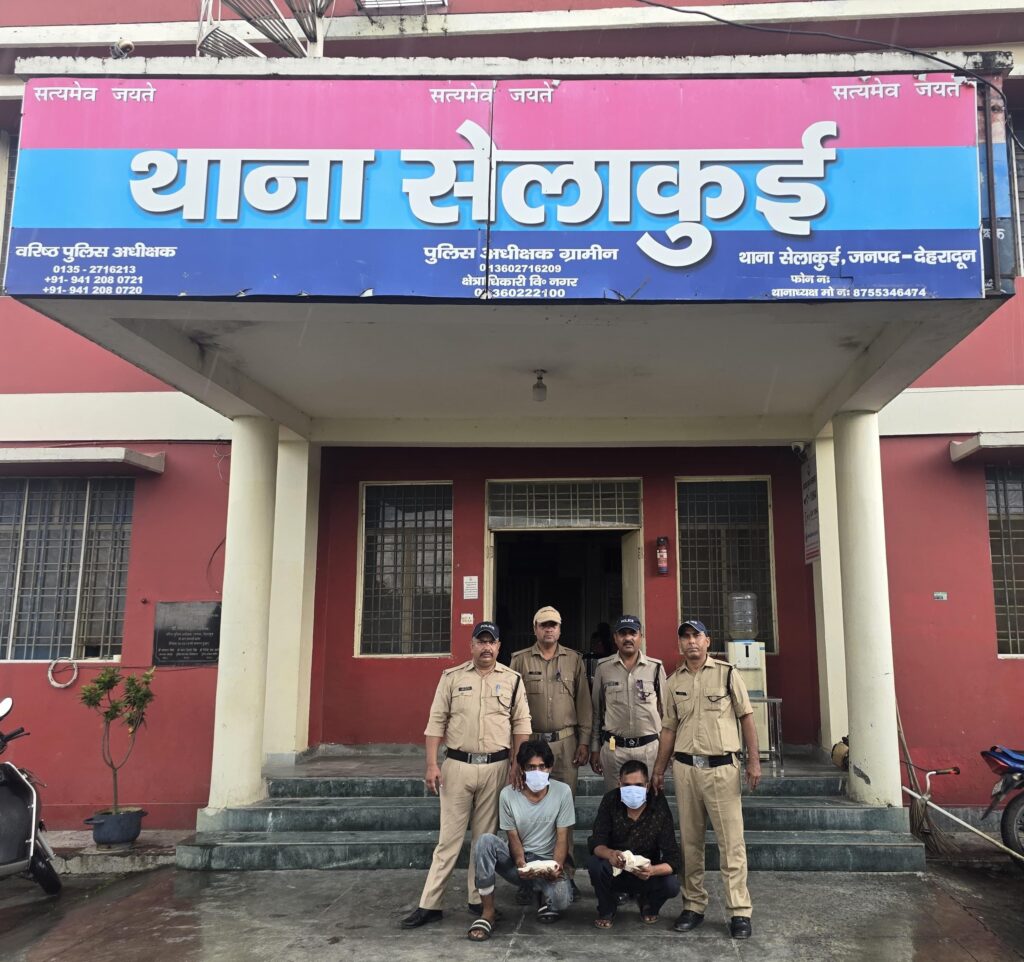 देहरादून । नशा तस्करों के खिलाफ़ दून पुलिस की कार्यवाही लगातार जारी है दून पुलिस एसएसपी अजय सिंह के नेतृत्व में लगातार ड्रग्स माफियाओं पर शिकंजा कस रही है सैकड़ों ड्रग्स माफियाओं को दून पुलिस सलाखों के पीछे भेज चुकी हैं इसी क्रम में थाना सेलाकुई पर गठित पुलिस टीम द्वारा द्वारा थाना क्षेत्र में चलाए जा रहे सघन चेकिंग अभियान के दौरान 27/08/25 को मुखबिर की सूचना पर 02 अभियुक्तों जिसमेंअंकित पाल और रजनीश कुमार को 498 ग्राम अवैध चरस के साथ गिरफ्तार किया गया इन अभियुक्तों के विरुद्ध थाना सेलाकुई पर धारा 8/20/29 एनडीपीएस एक्ट का अभियोग पंजीकृत किया गया। पूछताछ के दौरान अभियुक्तों द्वारा बताया गया कि उक्त चरस वो नेरवा हिमाचल प्रदेश से वीरू नाम के एक स्थानीय ड्रग पैडलर से सस्ते दामों में खरीद कर लाये थे, जिसे वो स्थानीय नशेडियों को थोडी-थोडी मात्रा में महंगे दामों में बेचकर मुनाफा कमाने की फिराक में थे पर इससे पूर्व ही पुलिस द्वारा उन्हें गिरफ्तार कर लिया गया। दून पुलिस ने नशा तस्करों के पास से लगभग 01 लाख रू0 मूल्य की 498 ग्राम अवैध चरस के साथ बरामद की है। पुलिस टीम में उ0नि0 पी०डी० भट्ट, थानाध्यक्ष सेलाकुई, व0उ0नि0 जितेंद्र कुमार,उ0नि0 अनित कुमार,कां0 बृजेश,कां0 उपेंद्र भंडारी,कां0 प्रवीण,कां0 मुकेश शामिल रहे।