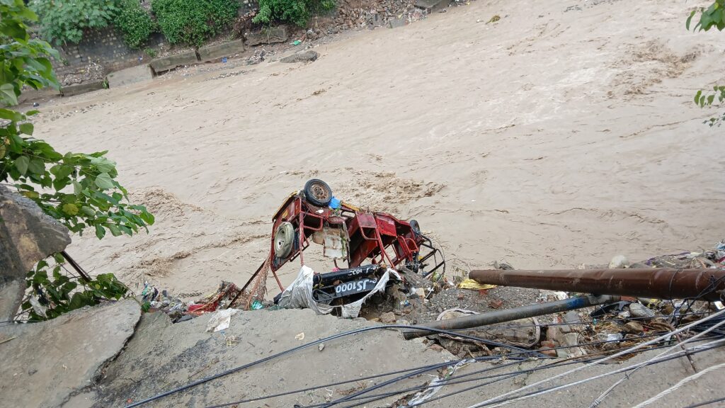 देहरादून। शहर और आसपास बीती रात हुई भारी बारिश ने भयंकर तबाही मचाई है जहां शहर से दूसरे शहर जाने वाले कई मार्ग अवरुद्ध हो गए है वहीं देहरादून शहर के मोहिनी रोड़ के पुल के किनारे की सड़क पूरी तरह ध्वस्त हो गई है जिसकी वजह से एक कार और एक ई रिक्शा को अपने साथ बहा ले गई देहरादून और आसपास बारिश से बहुत नुकसान हुआ है।