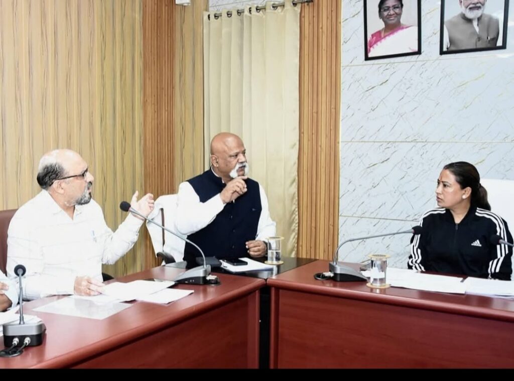 बैठक में प्रमुख विशेष खेल सचिव श्री अमित सिन्हा जी, खेल निदेशक श्री आशीष चौहान जी, श्री अजय अग्रवाल जी, श्री शक्ति सिंह जी,श्री नीरज गुप्ता जी, श्री राजेश मंमगाई जी आदि मौजूद रहे।
