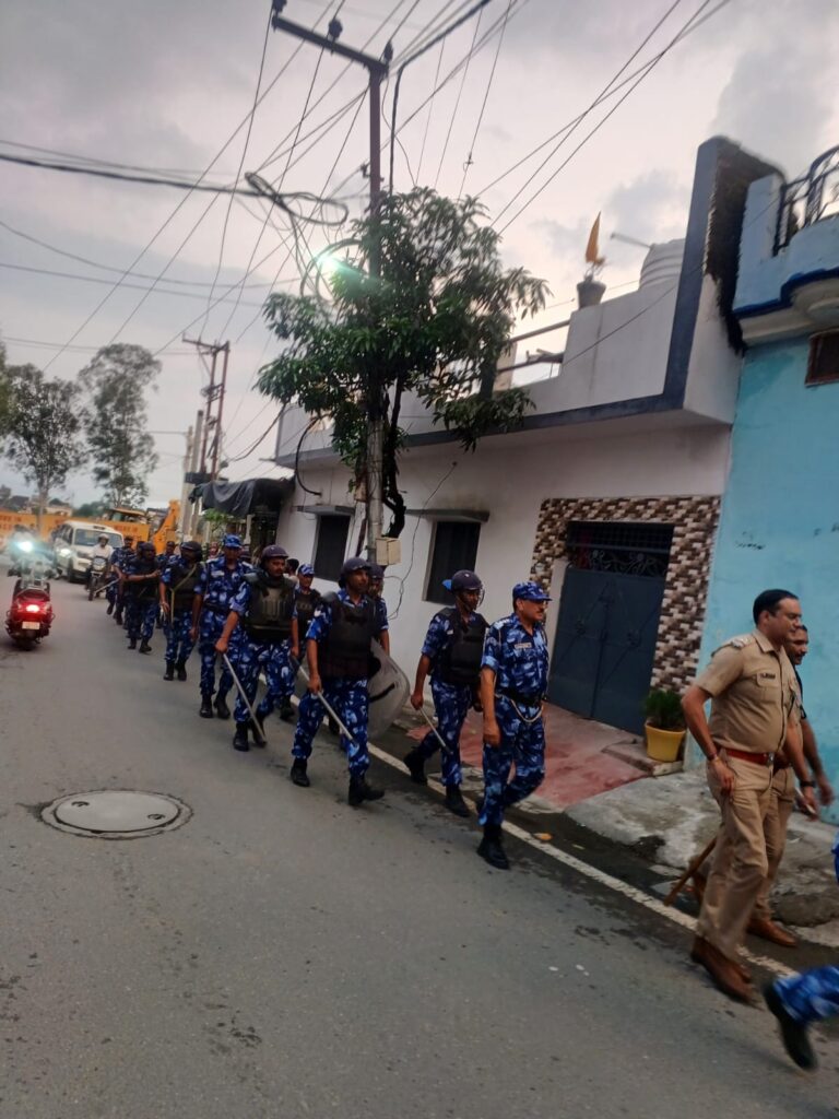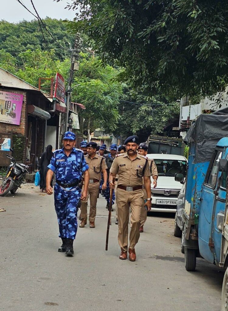 देहरादून।दून पुलिस द्वारा रैपिड एक्शन फोर्स के साथ मिलकर जनपद के अलग-अलग थाना क्षेत्रों में संयुक्त रूप से जनसम्पर्क अभियान चलाया गया, अभियान के दौरान रैपिड एक्शन फोर्स की टीम द्वारा स्थानीय पुलिस के साथ कोतवाली नगर क्षेत्र में लक्कड मण्डी, रीठा मण्डी, मुस्लिम कालोनी, खुडबुडा, धामावाला, लक्खीबाग और पटेलनगर क्षेत्र में मौहल्ला देहराखास, काली मन्दिर, इद्रेश, लालपुल, बाजार चौकी आदि स्थानों का पैदल भ्रमण कर क्षेत्र की भौगोलिक स्थिति, साम्प्रदायिक सौहार्द, पूर्व में घटित साम्प्रदायिक घटनाओं, क्षेत्रों के संवेदनशील एवं अति संवेदनशील इलाकों की पूर्ण जानकारी हासिल की गयी।