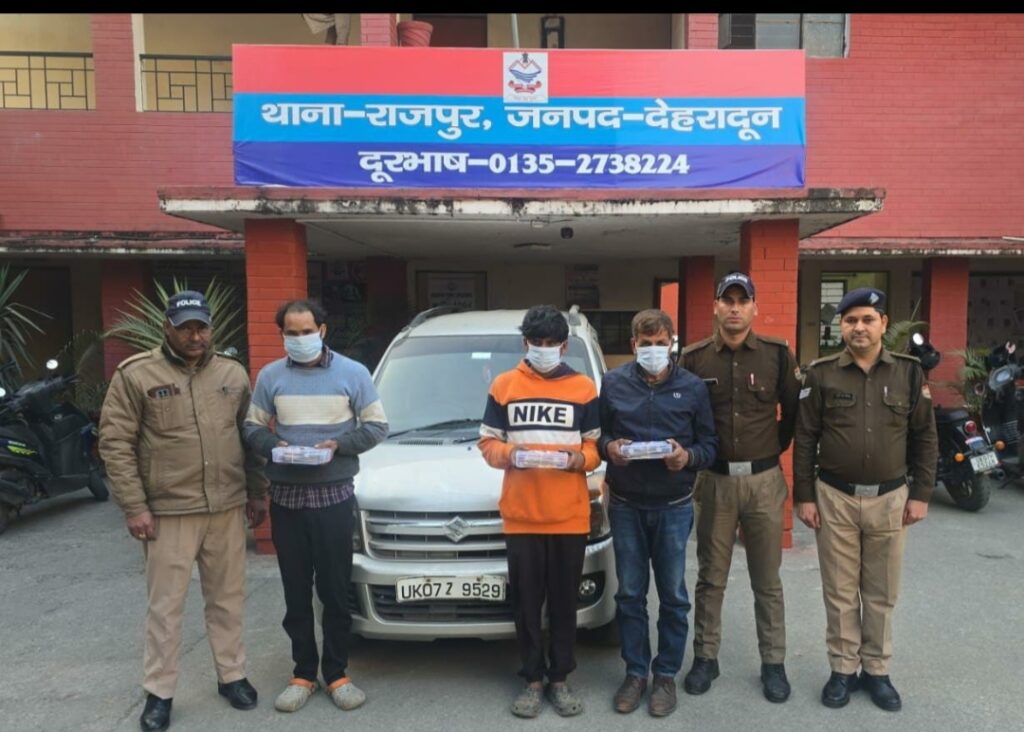 1- शफात अली पुत्र लाल मोहम्मद निवासी ग्राम चौकी थाना सुबह जिला बाराबंकी उत्तर प्रदेश उम्र 48 वर्ष हाल किराएदार मुफीद खान काठ बंगला थाना राजपुर देहरादून2- नदीम उर्फ गुड्डू पुत्र आशिक अली निवासी मझगांव बाजार शुकुल जिला अमेठी उत्तर प्रदेश उम्र 38 वर्ष 3- इश्तियाक उर्फ कुल्ले पुत्र मुनीर निवासी ग्राम खलीज बाहरपुर थाना बाजार शुक्ल जिला अमेठी उत्तर प्रदेश उम्र 30 वर्ष हाल किराएदार वीर गब्बर सिंह बस्ती कैनाल रोड थाना राजपुर देहरादून