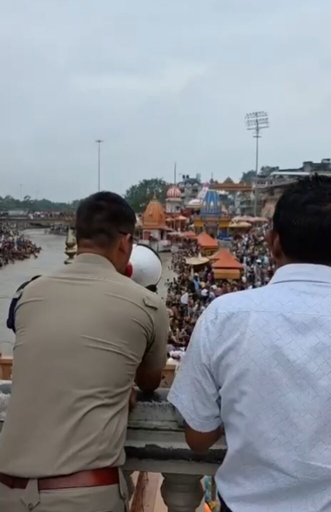 लगातार पहाड़ों में हो रही बारिश के चलते गंगा नदी का जलस्तर खतरे के निशान से ऊपर आ गया है इसको देखते हुए हरिद्वार पुलिस प्रशासन द्वारा लोगो को लाउडस्पीकर के जरिए सावधान किया जा रहा है।